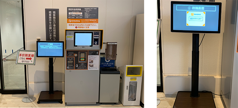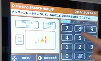 事前精算機のタッチパネルでナンバーを入力し利用時間に応じた料金を精算します。